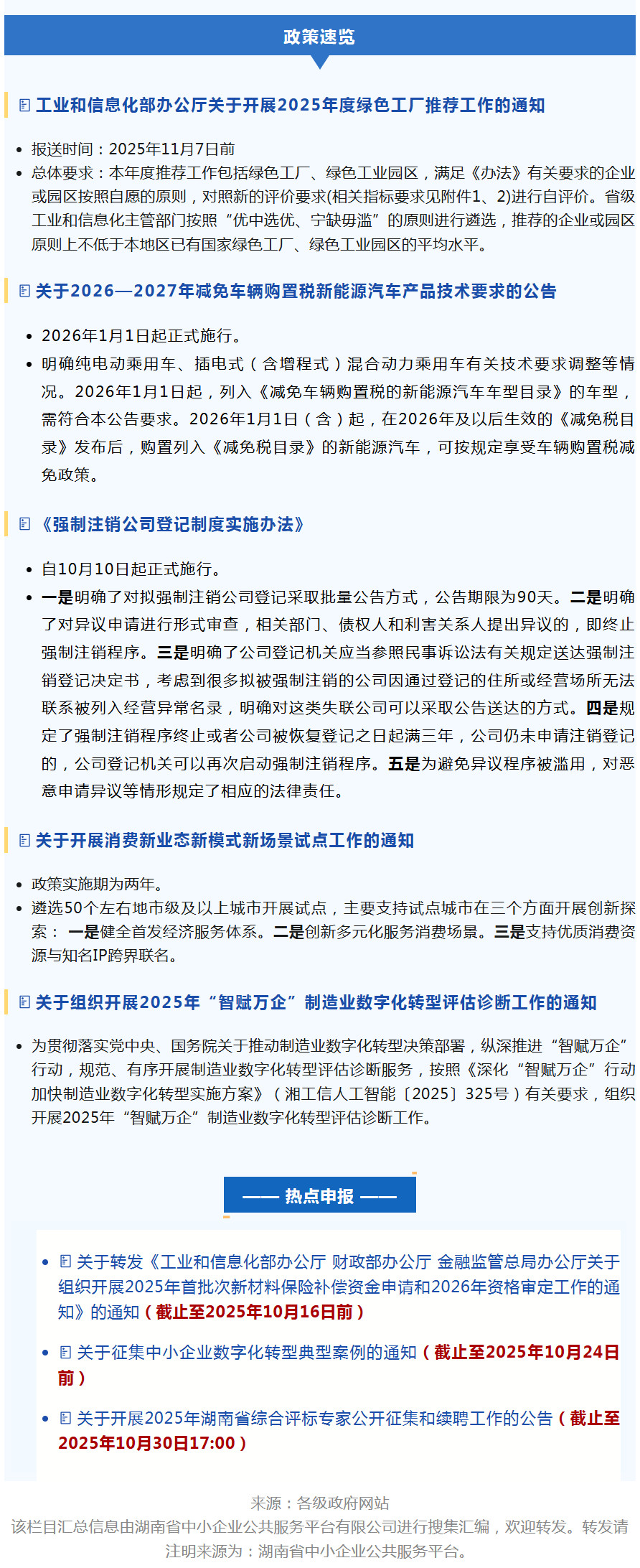 政策速览【2025年9月27日—10月11日】,湖南省机械工业协会
