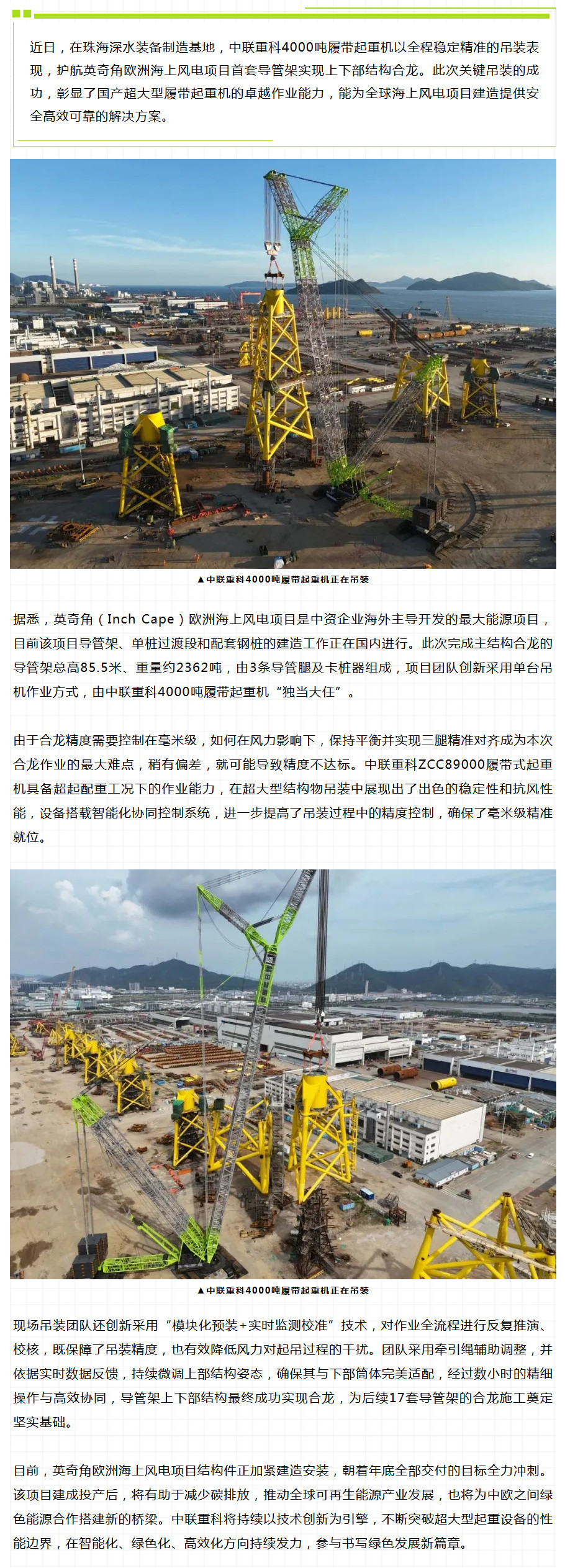 毫米级合龙!中联重科4000吨级履带吊完成英奇角项目关键吊装