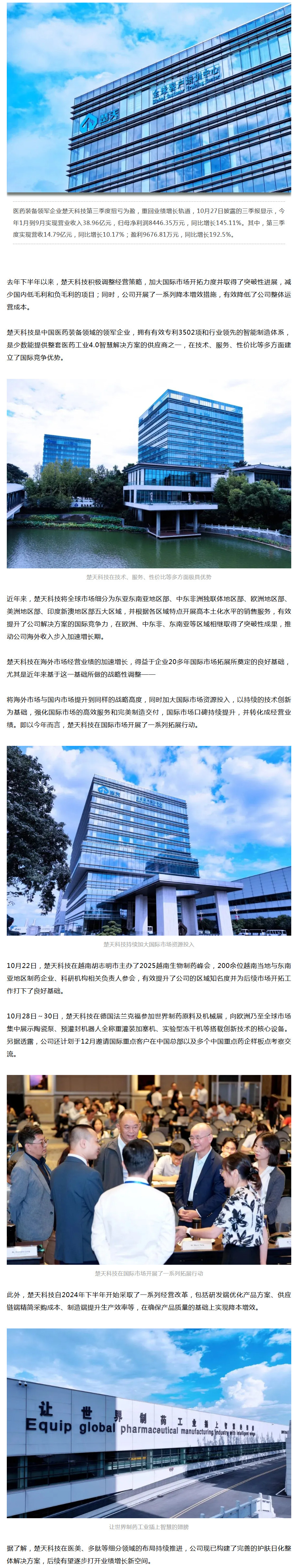 出海提速+降本增效,第三季度盈利大增193%,楚天科技重回业绩增长轨道
