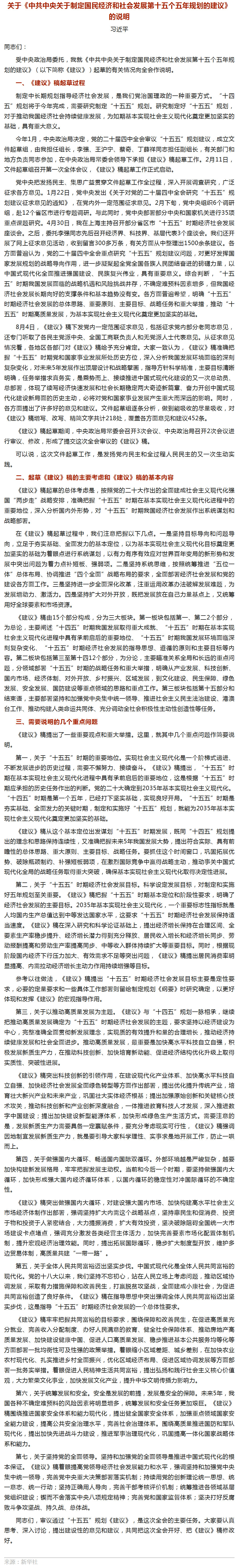 习近平:关于《中共中央关于制定国民经济和社会发展第十五个五年规划的建议》的说明|湖南省机械工业协会
