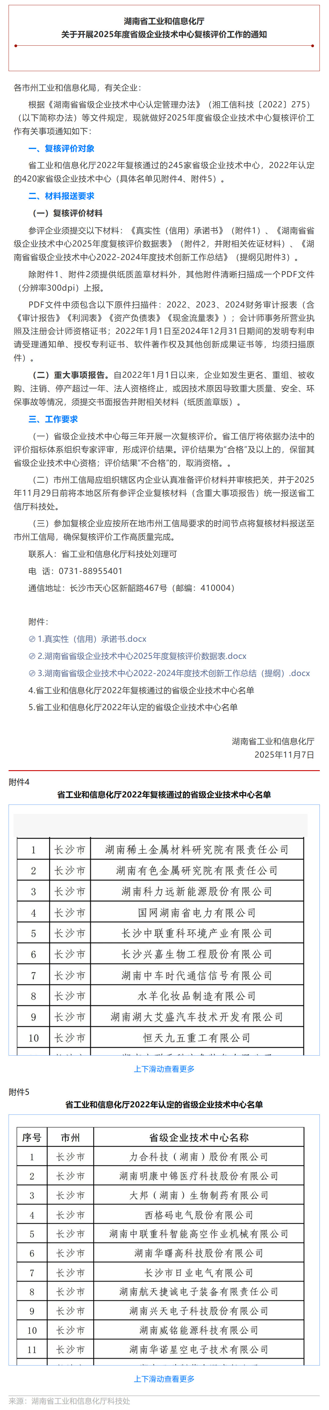 省工业和信息化厅组织开展2025年度省级企业技术中心复核评价工作|湖南省机械工业协会