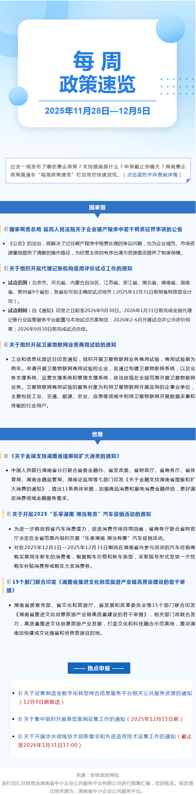 政策速览【2025年11月28日—12月5日】,湖南省机械工业协会