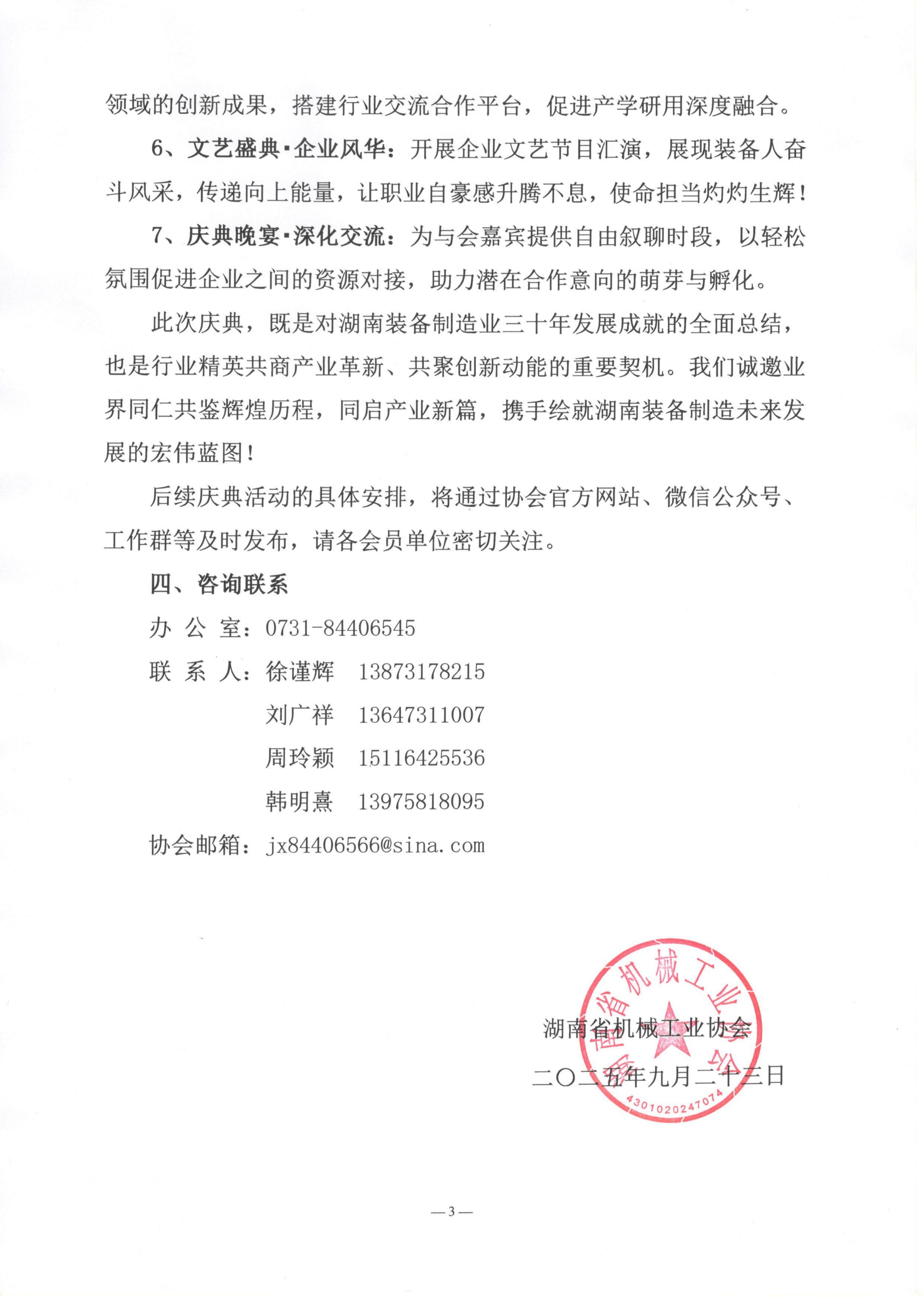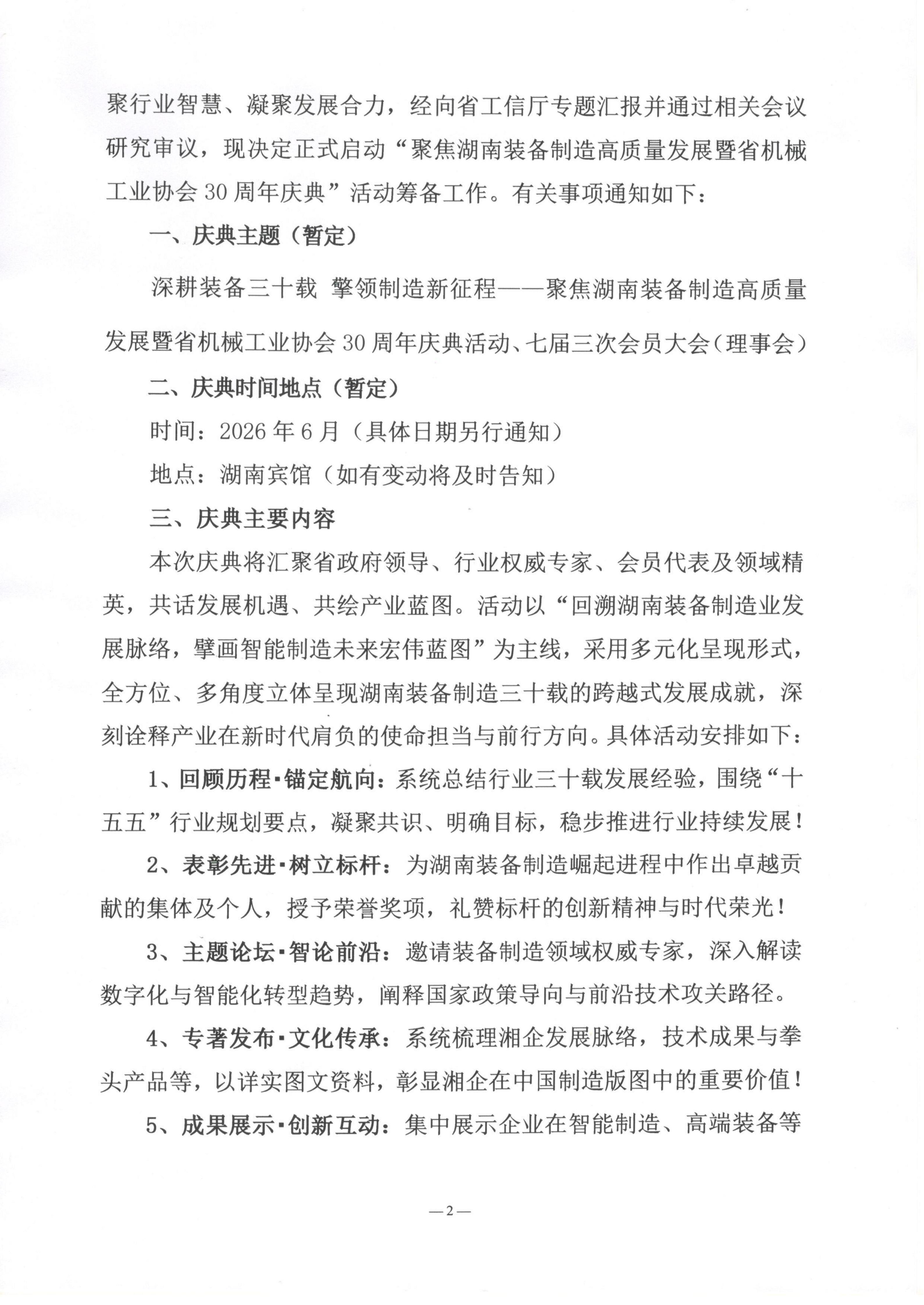 关于“聚焦湖南装备制造高质量发展暨省机械工业协会30周年庆典”活动筹备工作的通知,湖南省机械工业协会