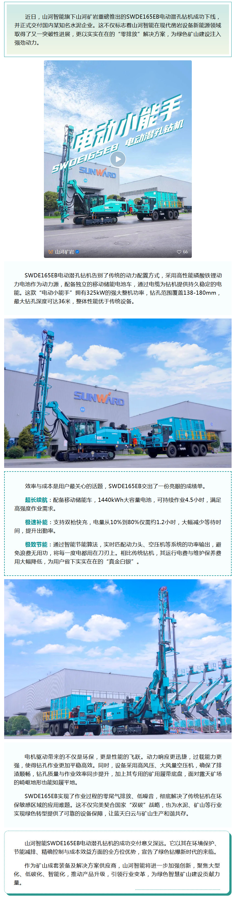 山河智能SWDE165EB电动潜孔钻机重磅下线,开启绿色钻爆新时代,湖南省机械工业协会