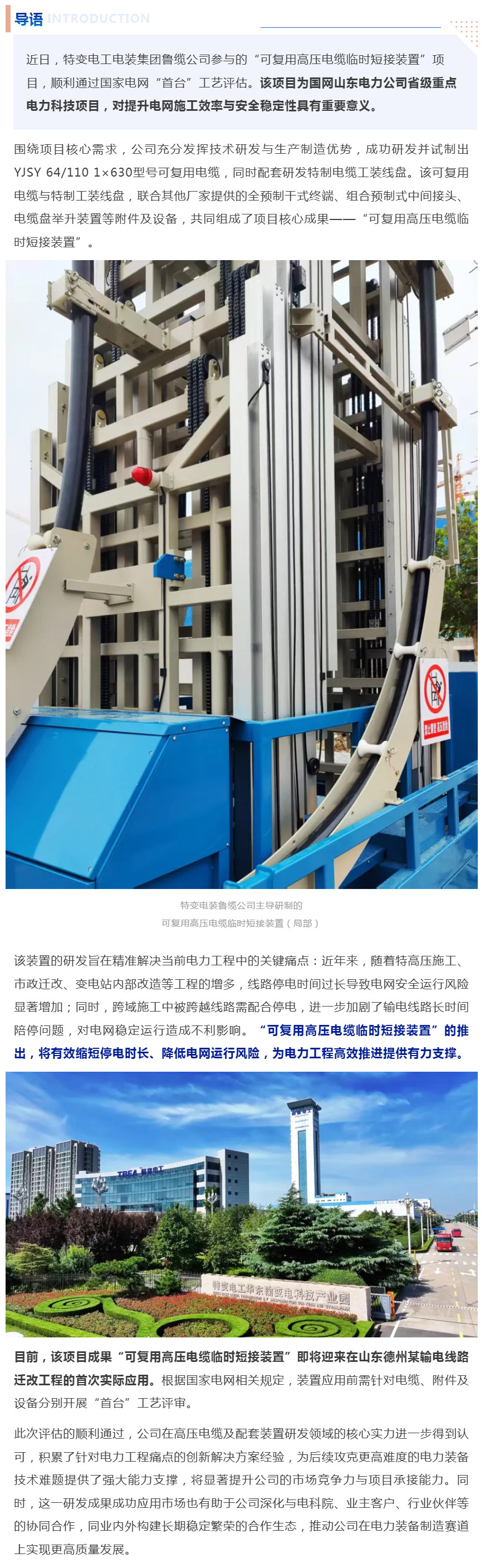 首台!“可复用高压电缆临时短接装置”通过国网工艺评估|湖南省机械工业协会