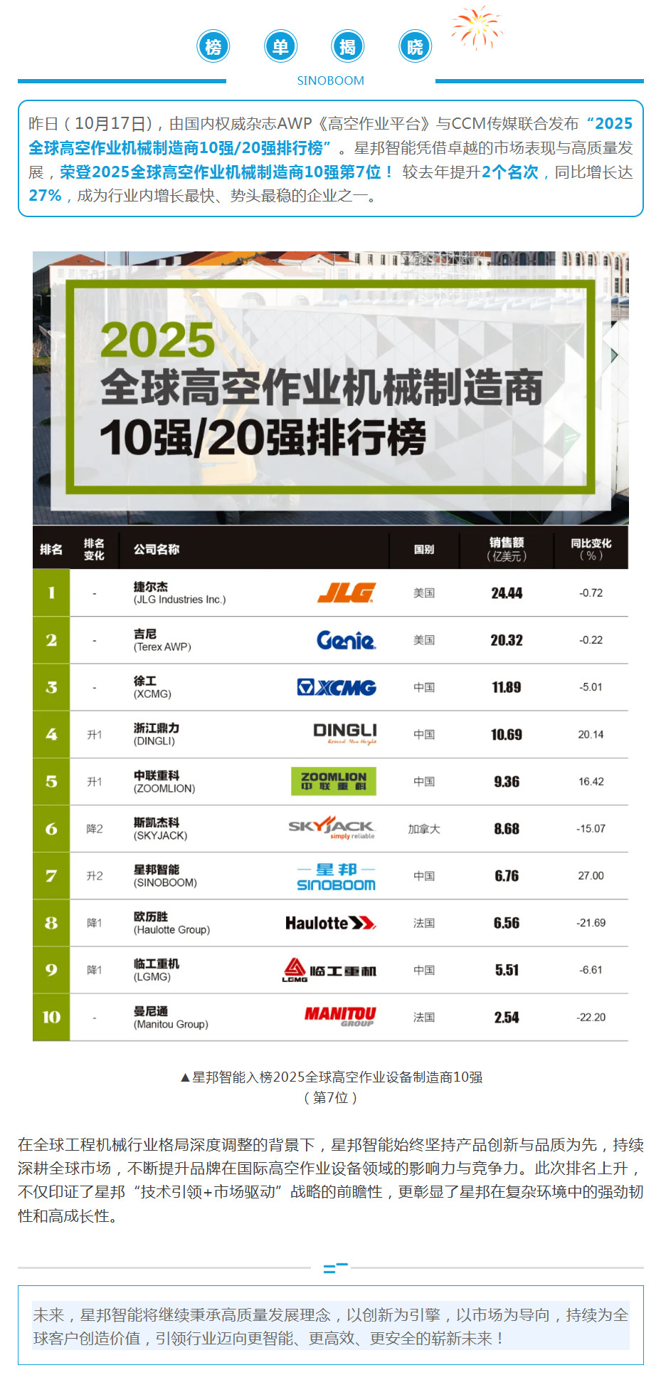 星邦智能全球排名再攀升,逆势跃升2位!|湖南省机械工业协会