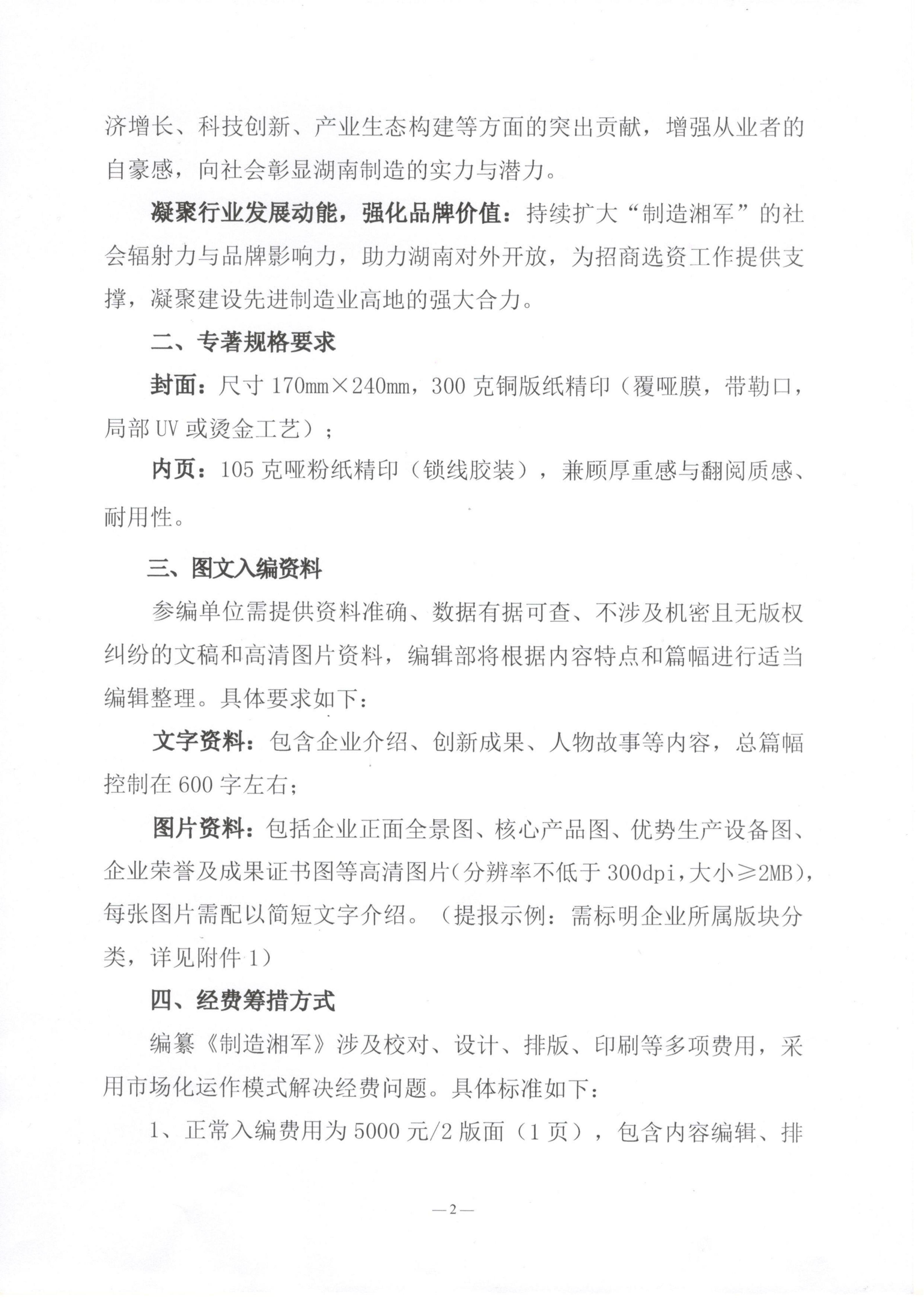 关于“聚焦湖南装备制造高质量发展暨省机械工业协会30周年庆典”活动——《制造湘军》专著编纂工作的通知