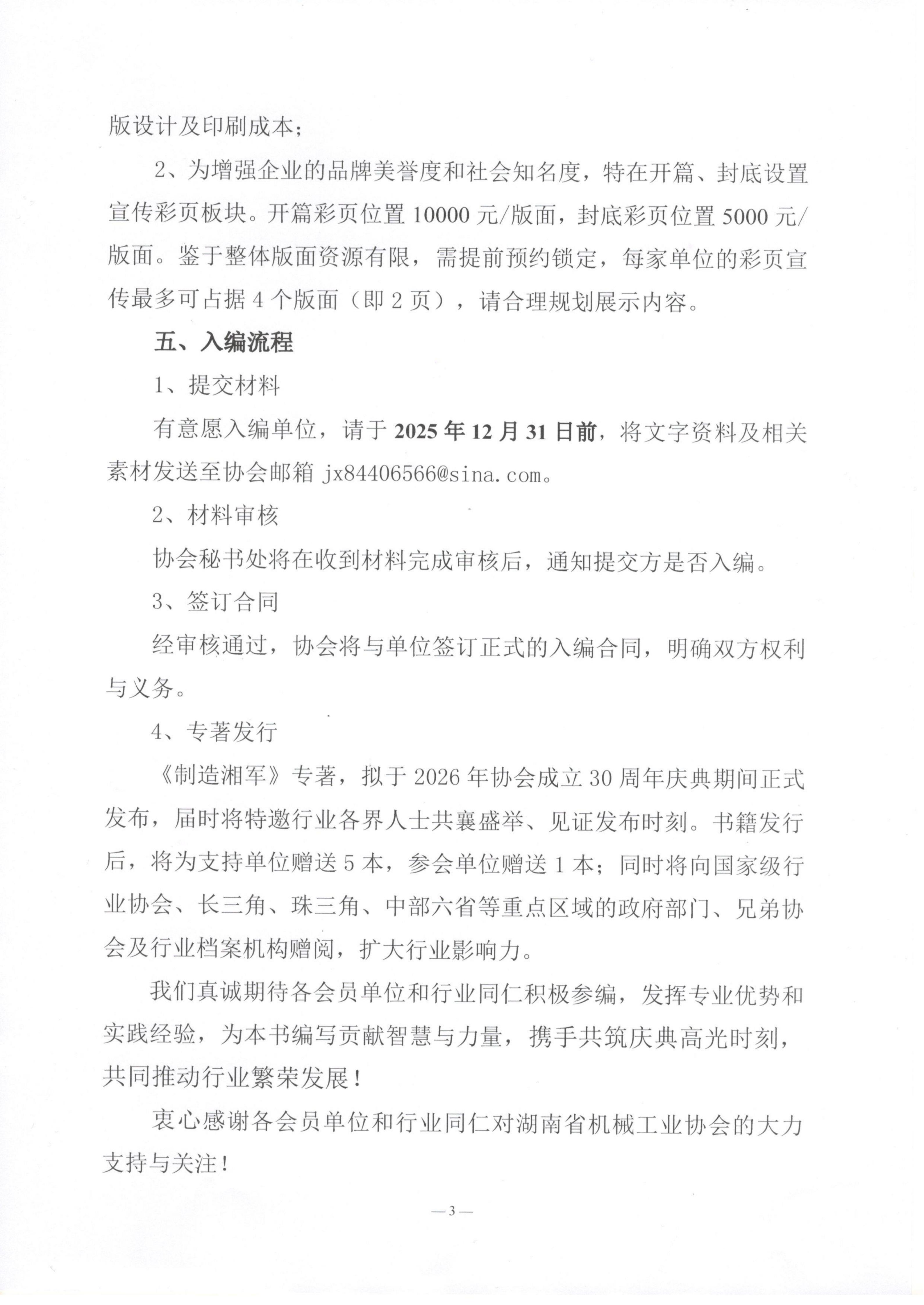 关于“聚焦湖南装备制造高质量发展暨省机械工业协会30周年庆典”活动——《制造湘军》专著编纂工作的通知,湖南省机械工业协会