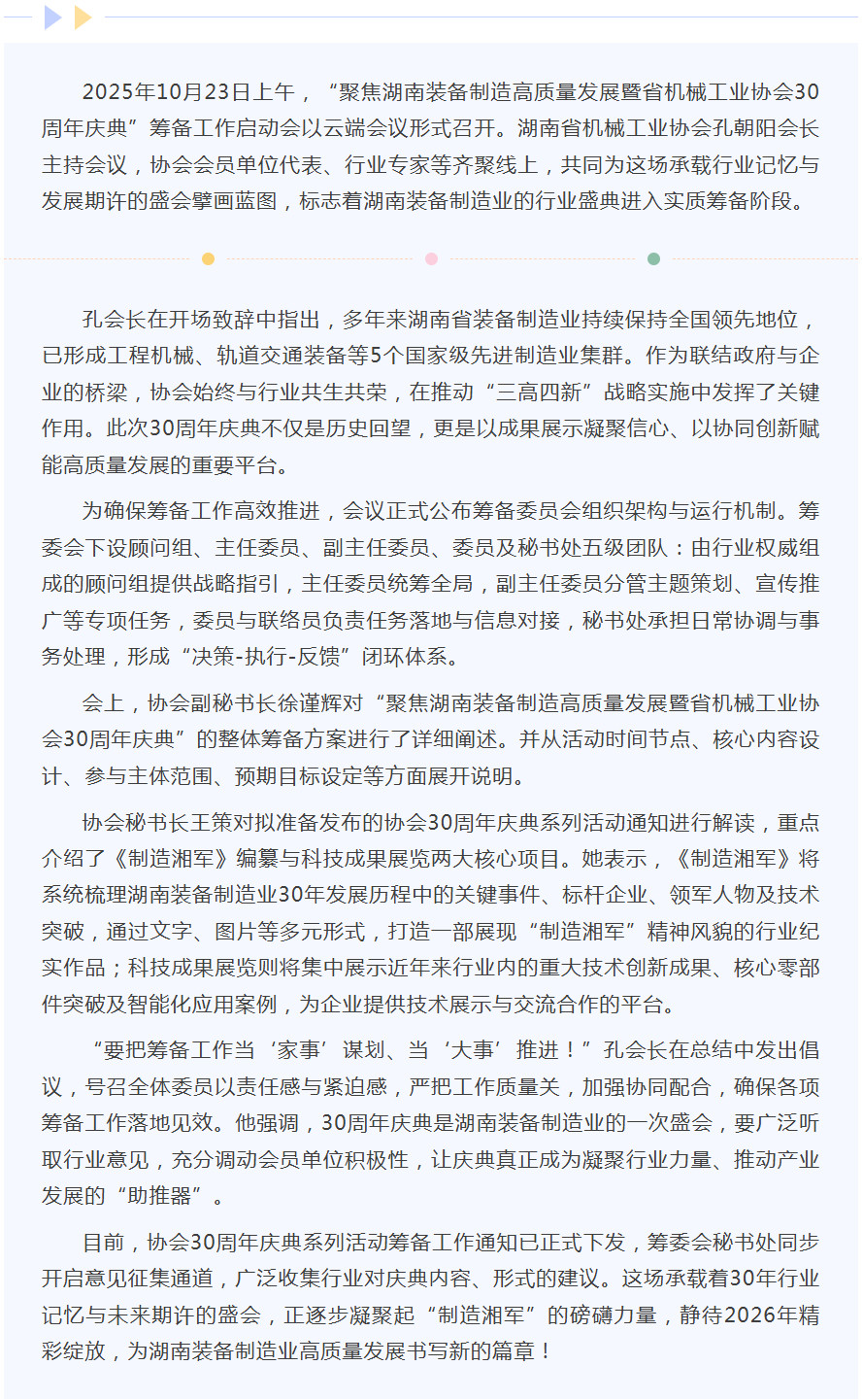 云端汇聚谋盛事 三十华章启新程​ ——湖南省机械工业协会召开30周年庆典筹备工作线上会议|湖南省机械工业协会