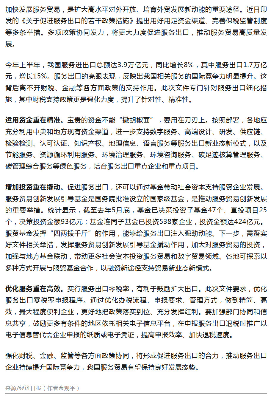 经济日报金观平:强化政策协同促进服务出口|湖南省机械工业协会