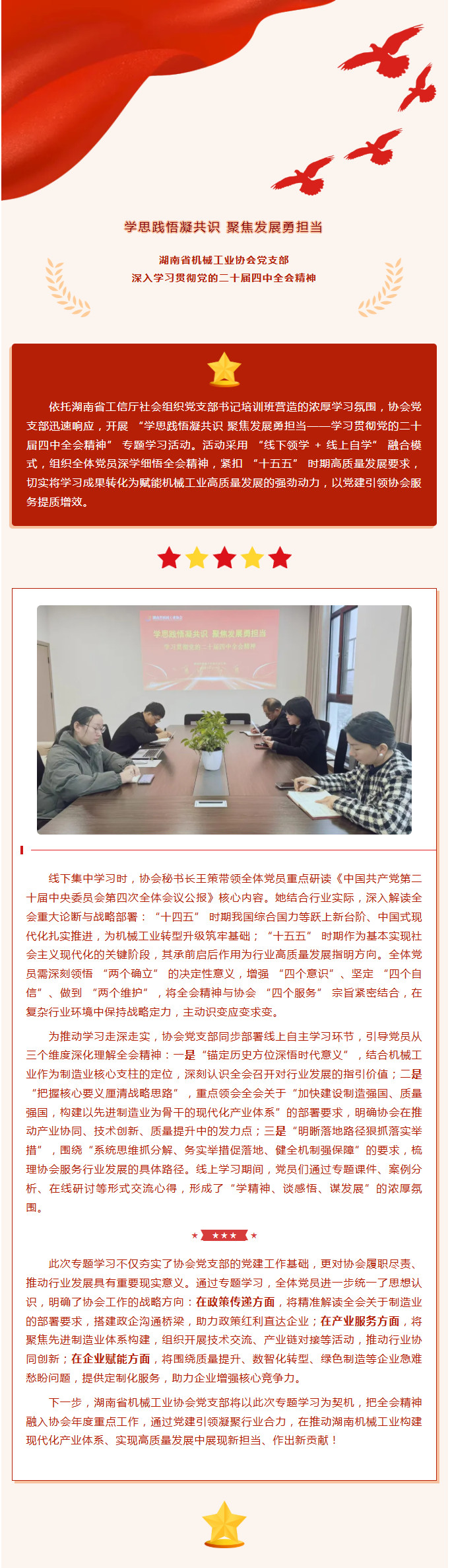 学思践悟凝共识 聚焦发展勇担当——湖南省机械工业协会党支部深入学习贯彻党的二十届四中全会精神|湖南省机械工业协会