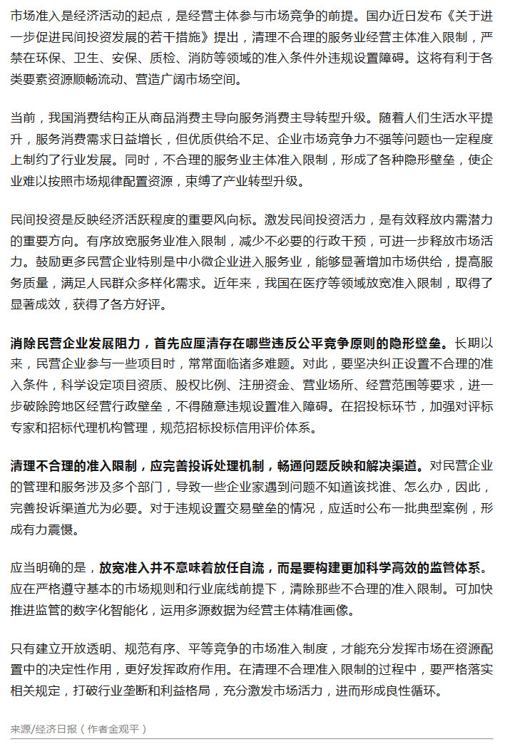 经济日报金观平:为民企市场准入破壁清障|湖南省机械工业协会