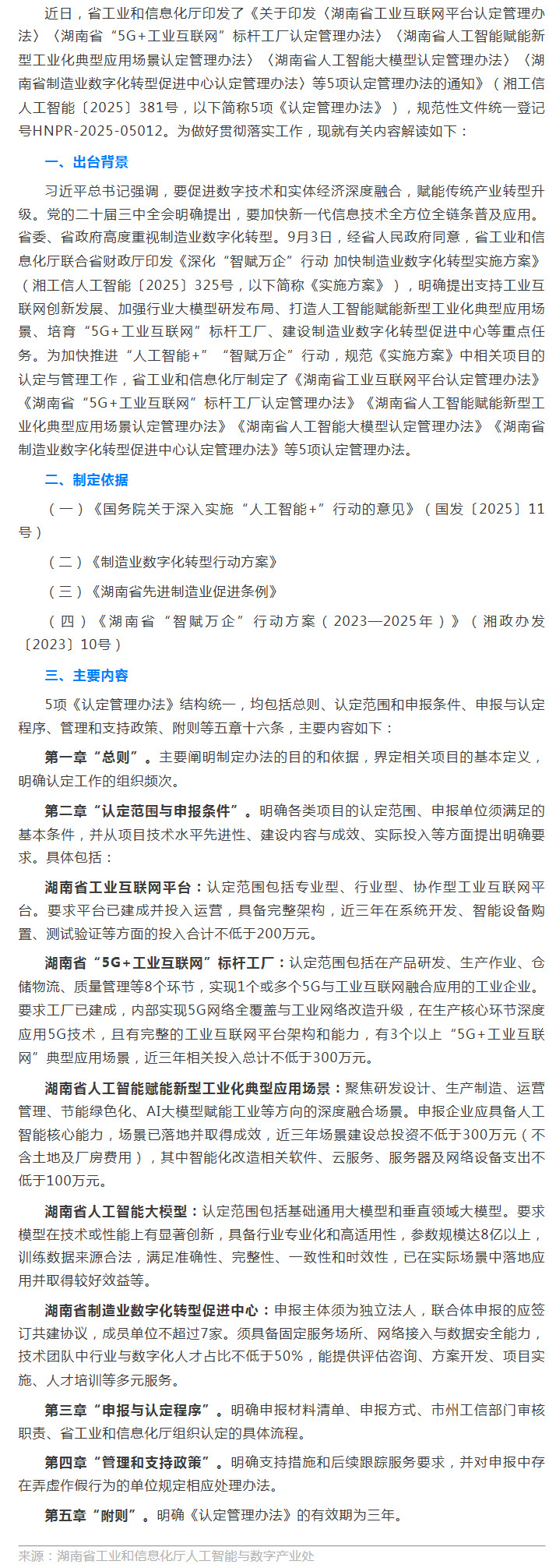 《湖南省工业互联网平台认定管理办法》等五项认定管理办法政策解读