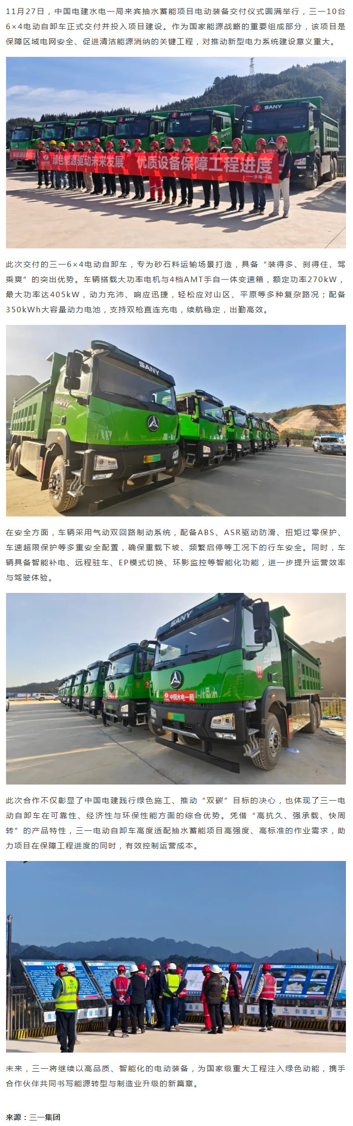 三一电动自卸车批量交付中国电建水电一局|湖南省机械工业协会