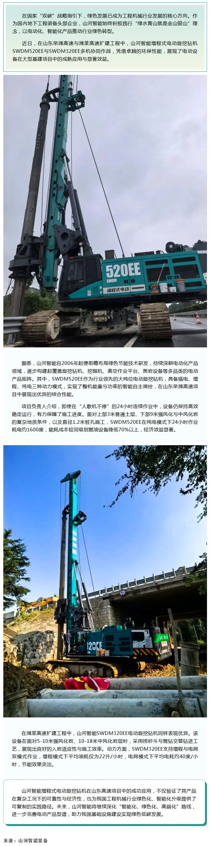 山河智能增程式电动旋挖钻机助力山东高速建设,绿色施工成效显著,湖南省机械工业协会