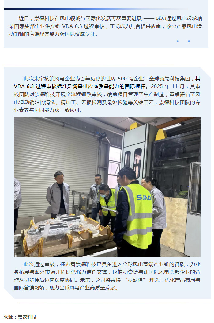 崇德科技顺利通过风电齿轮箱国际头部企业VDA过程审核