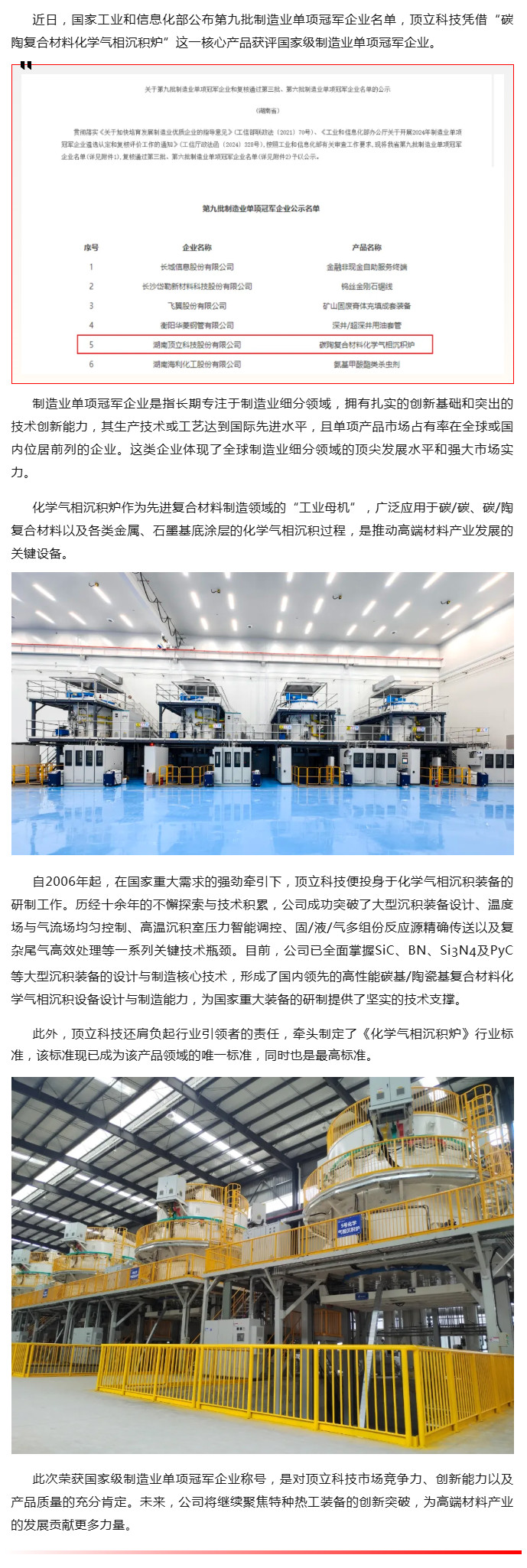 顶立科技获评国家级制造业单项冠军企业,湖南省机械工业协会