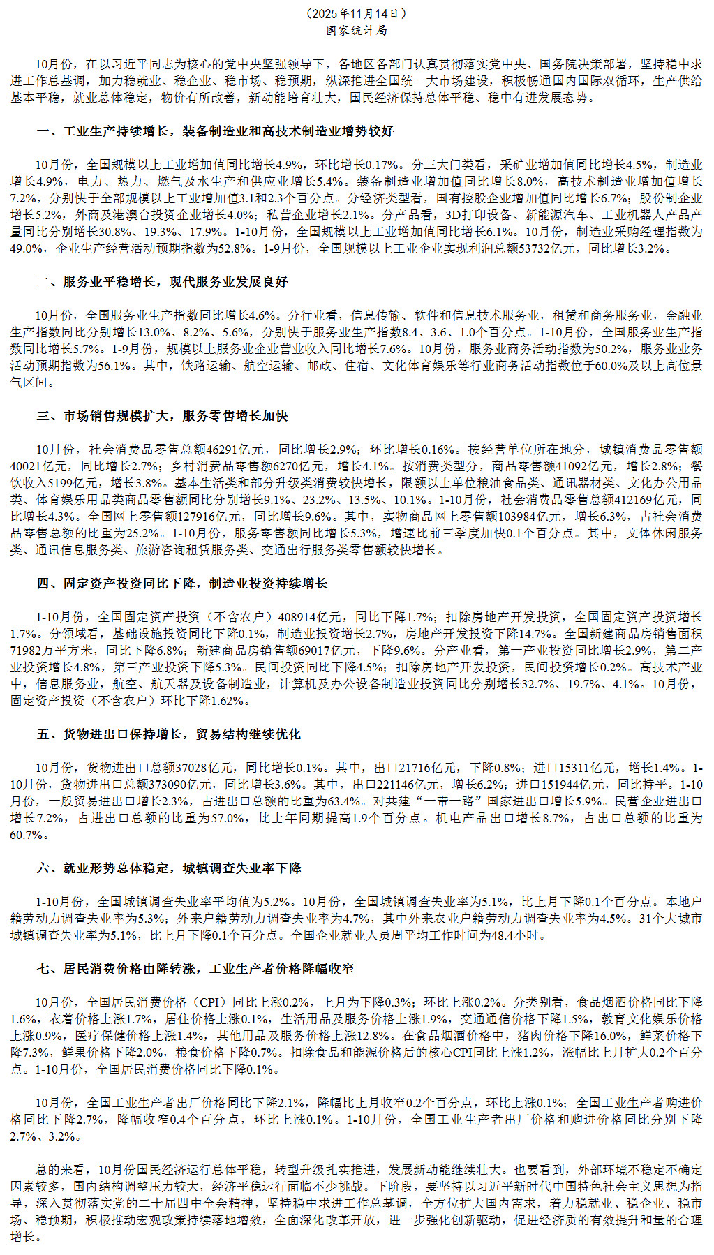 10月份国民经济运行基本平稳 稳中有进态势持续|湖南省机械工业协会